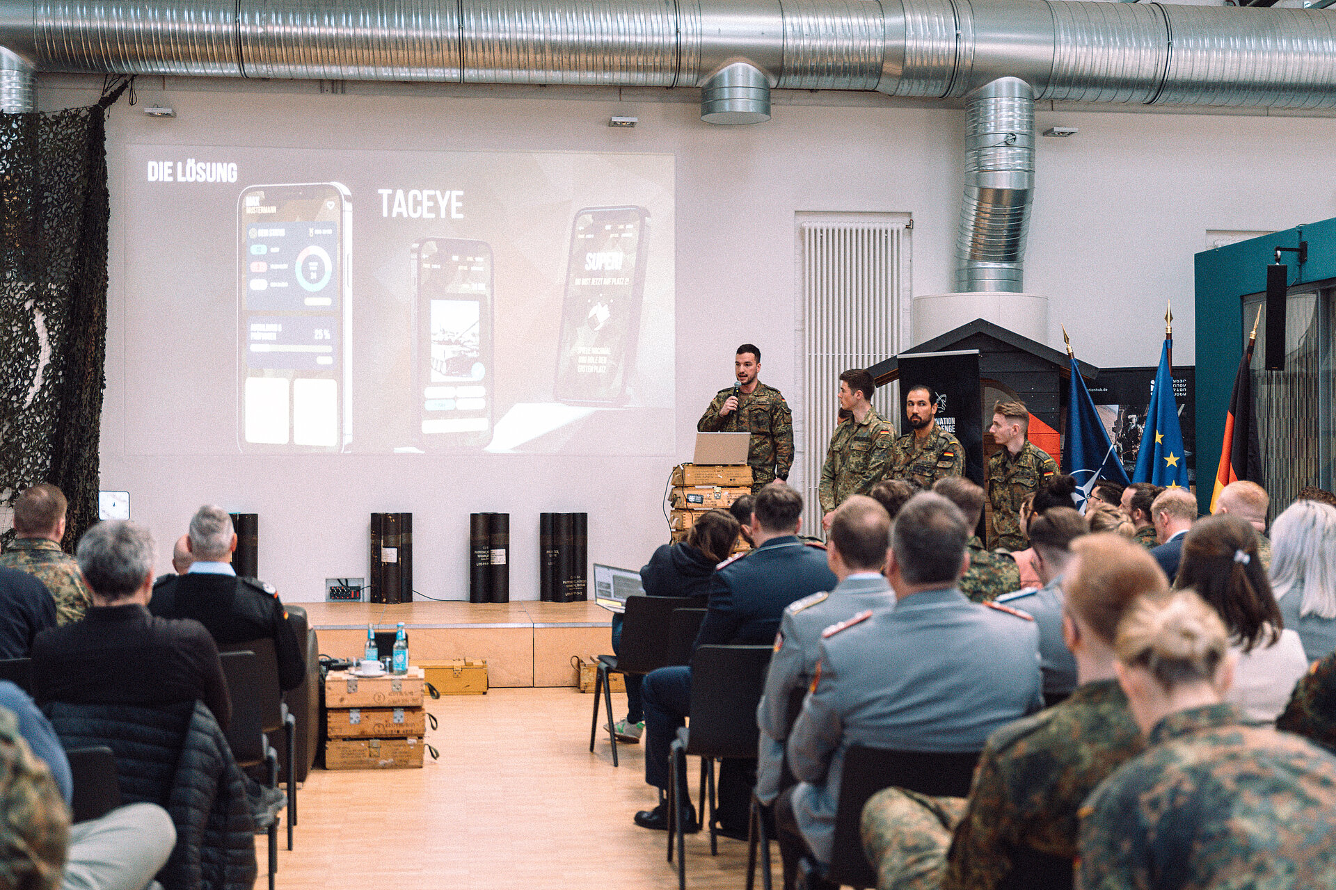 Learning apps are not only an important educational tool for driving tests. They are also becoming increasingly important in military training in order to convey proven learning content in a modern and contemporary framework. Some instructors from the Army Reconnaissance School have therefore joined forces to develop the "TACEYE" app. The added value not only convinced the group of experts on Demo Day: "TACEYE" saves a huge amount of resources and time, increases learning motivation through gamification and gives instructors the opportunity to keep an eye on the learning success of course participants. "Learning the specifications and differences of combat vehicles interactively has never been so easy," said expert Colonel Marc Dingler after the presentation.